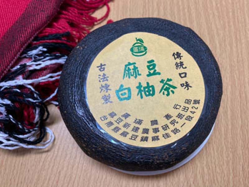 白柚茶是將裡面的柚子肉掏乾淨,挖出的果肉與茶葉攪拌後塞回去,所有的過程都得要手工進行,再經過壓,九蒸九曬的手續才能完成,完成後還要再放約10年才能悶出特有的風味。